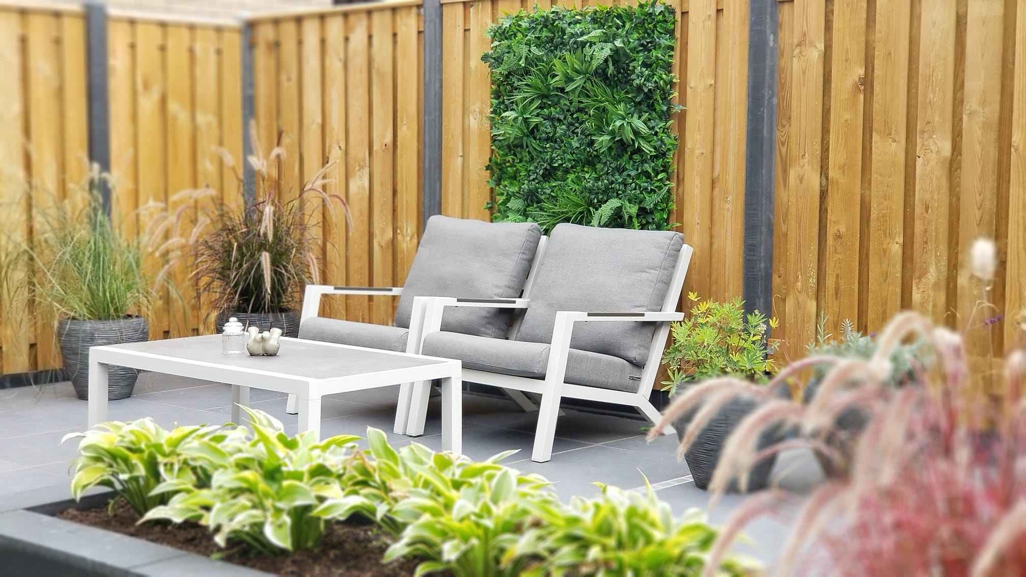 Als de dagen korter worden en de temperaturen dalen, is het tijd om je kunsthaag een warme en knusse uitstraling te geven. Dit kan eenvoudig door herfsttinten toe te voegen, zoals dieprode of oranje decoratieve bladeren. Ook kleine houten elementen, zoals rustieke kransen of een paar gedroogde takken, passen perfect bij de sfeer van dit seizoen. Om het helemaal af te maken, kun je een slinger met warm gekleurde lichtjes ophangen, zodat je haag zelfs op donkere herfstavonden een gezellige uitstraling heeft. Met een plaid op je tuinbank en een kop warme thee in de hand, is jouw buitenruimte de ideale plek om te genieten van de herfst.